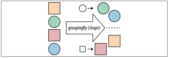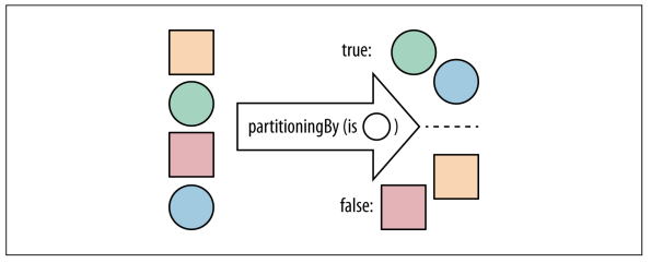 **groupingBy**收集器( 如图5-2 所示) 接受一个分类函数, 用来对数据分组, 就像 partitioningBy 一样, 接受一个Predicate 对象将数据分成 ture 和 false 两部分。