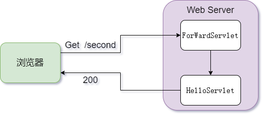 例如,我们已经编写了一个能处理/hello的HelloServlet,继续编写一个能处理/second的ForwardServlet: