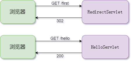 如果浏览器发送GET /first请求,RedirectServlet将处理此请求。由于RedirectServlet在内部又发送了重定向响应,因此,浏览器会收到如下响应: